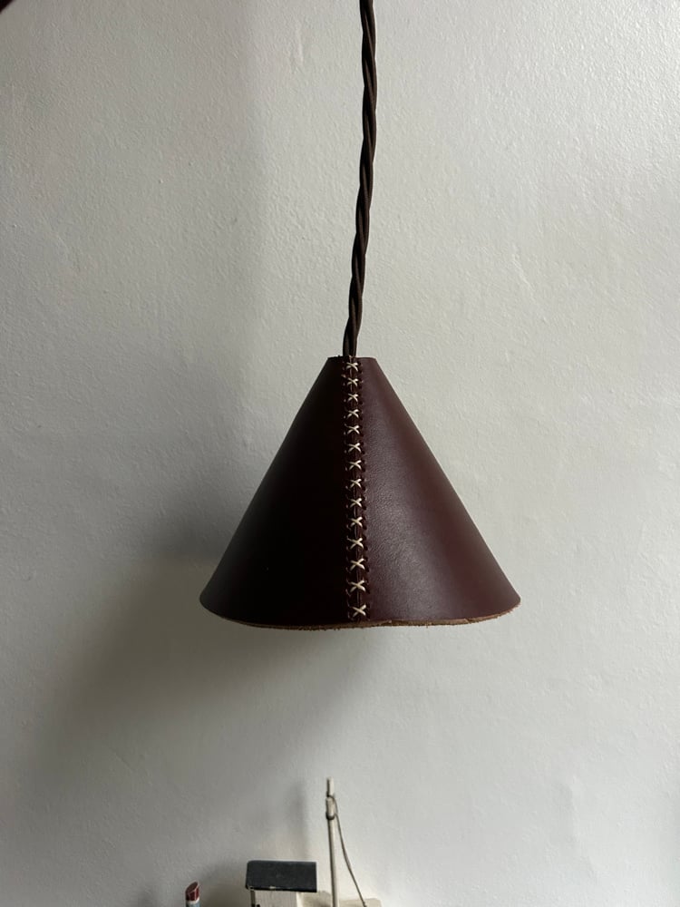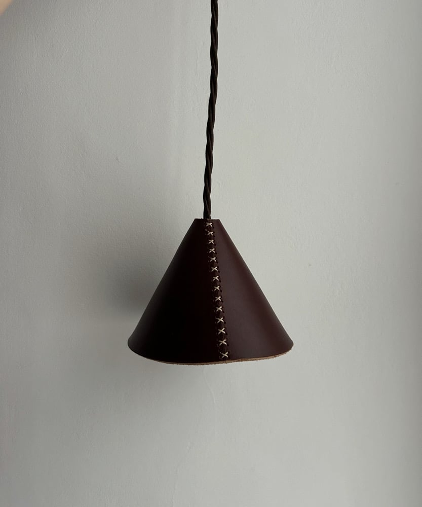 handmade leather pendant lampshade measuring W 19cm x H 16cm