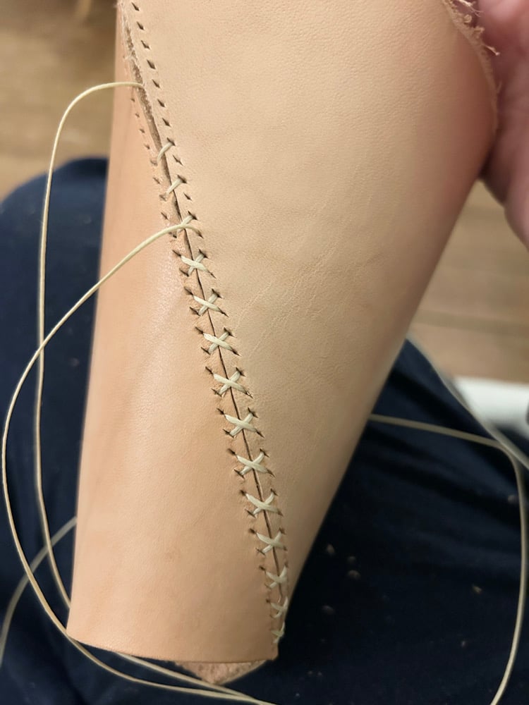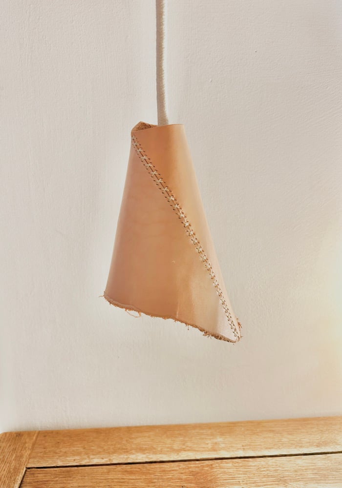 handmade leather pendant lampshade measuring 22cm x 14cm