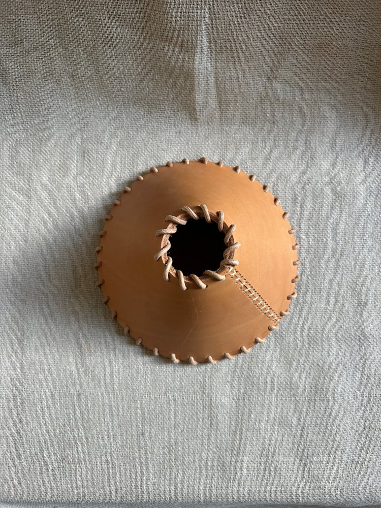handmade leather pendant lampshade measuring W22cm x H 20cm